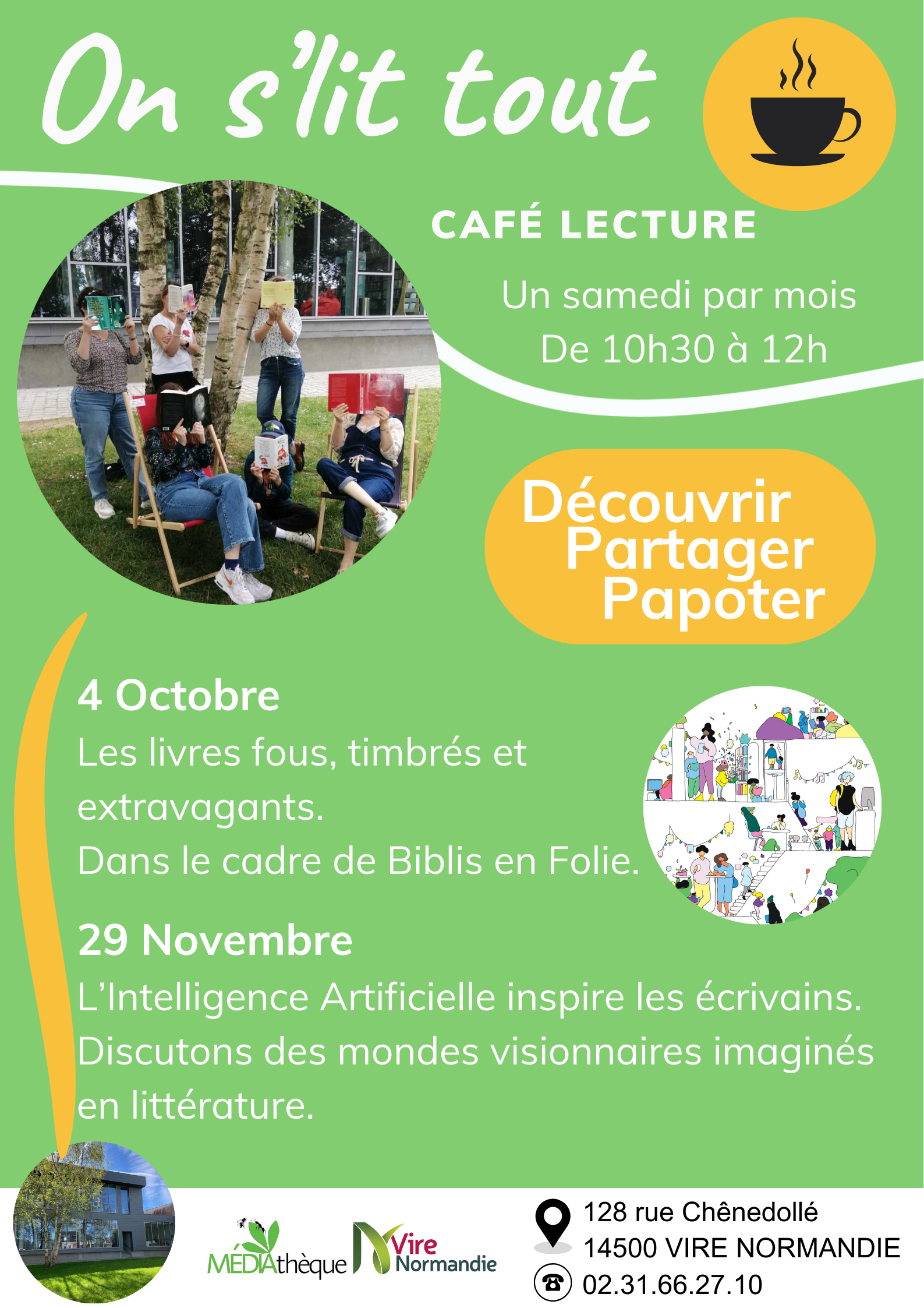 Café lecture de la Médiathèque. Venez découvrir des auteurs, partager des lectures, papoter.
